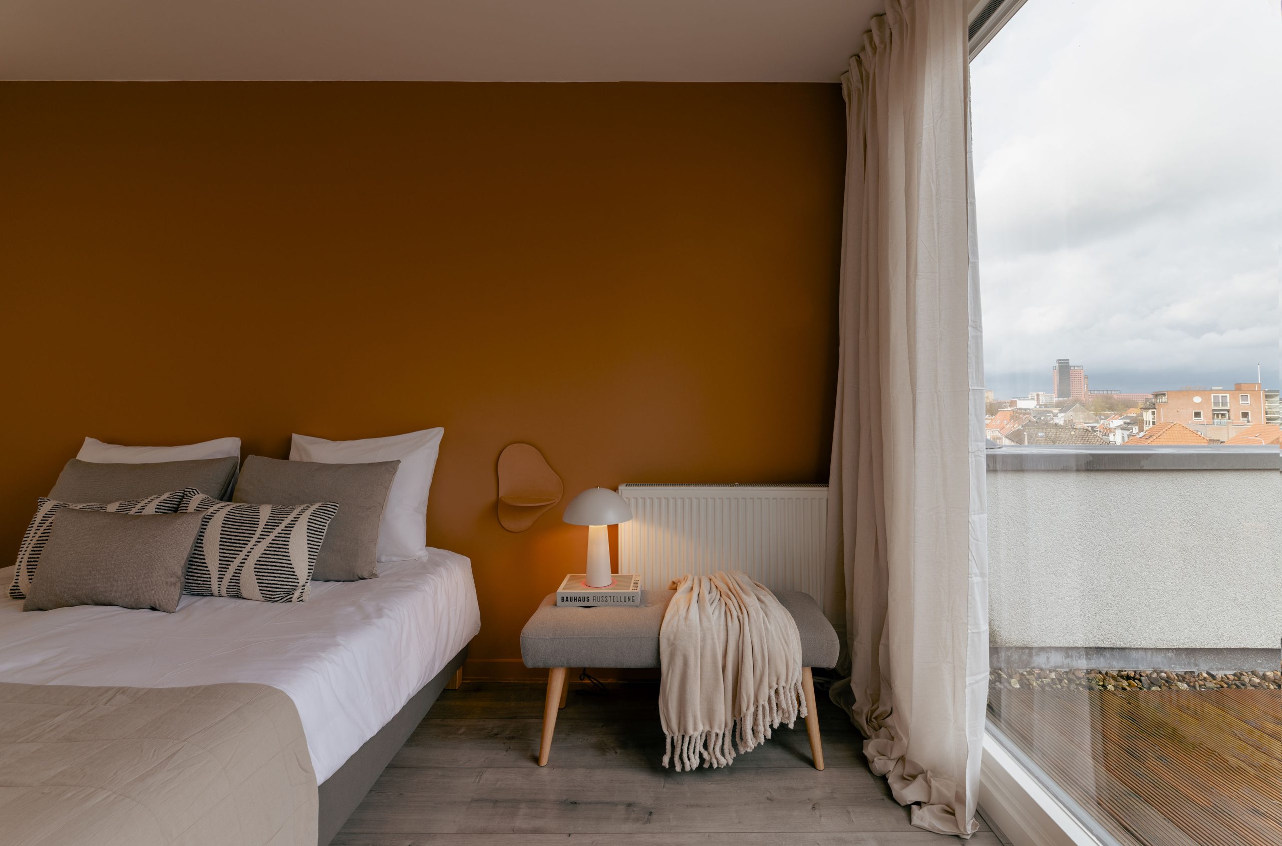 Je komt het appartement binnen in de woonkamer met open keuken. Hier vind je een comfortabele bank die indien gewenst uitgeklapt kan worden tot volwaardige slaapbank. Er hangt een smart TV. De eerste slaapkamer bevind zich ook op deze verdieping, net als een toilet. Op de bovenste verdieping is de tweede slaapkamer met aangrenzend een fijne badkamer met ligbad en inloopdouche. Hier is ook het tweede toilet. Vanaf deze slaapkamer loop je het dakterras op om te genieten van de rust en het panoramische uitzicht over de stad! * De bedden in de slaapkamers kunnen worden gescheiden